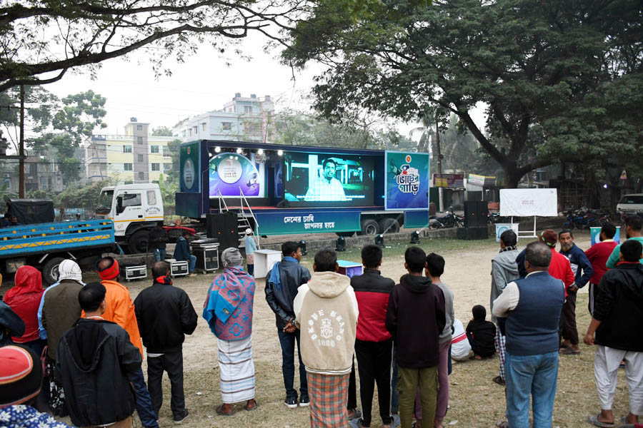 গণভোট ও নির্বাচনী ক্যারাভানের সাংস্কৃতিক অনুষ্ঠান ও ডকুমেন্টারি প্রদর্শনী দেখতে উপশহর কলেজ মাঠে প্রায় সহস্রাধিক দর্শকশ্রোতা উপস্থিত ছিলেন।