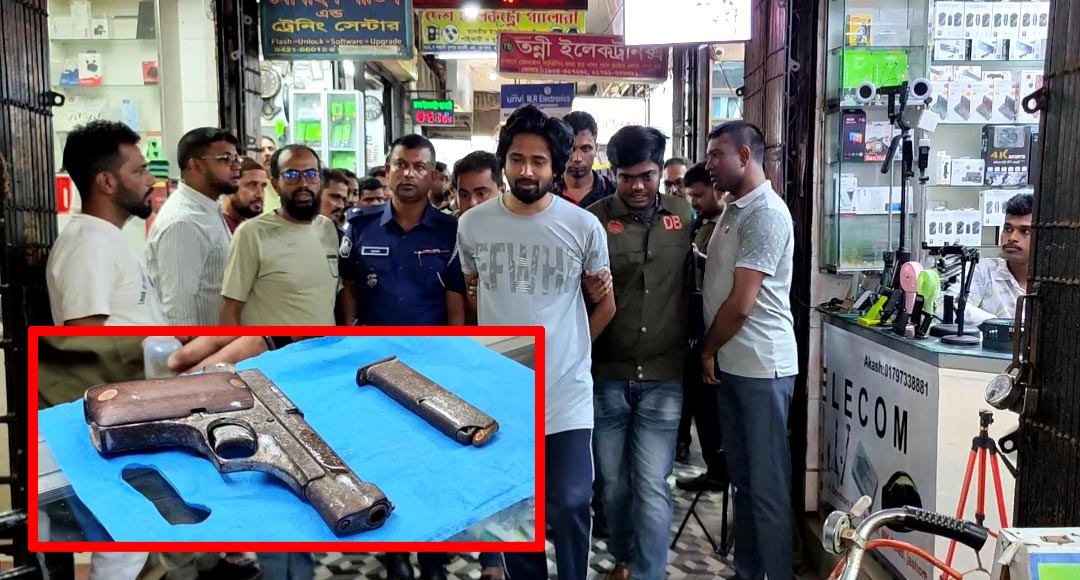 যশোরে মোবাইল সার্ভিসিং দোকানে বিদেশি পিস্তল-গুলি : মালিক আটক