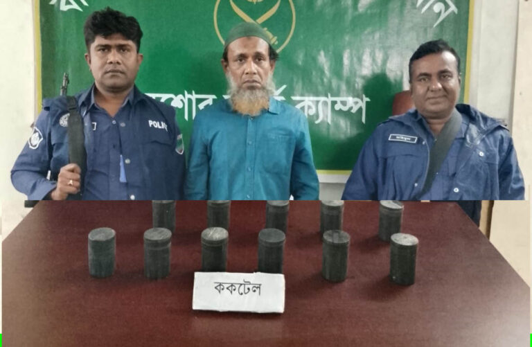 যশোরে যৌথবাহিনীর অভিযানে ১১টি ককটেলসহ একজন আটক
