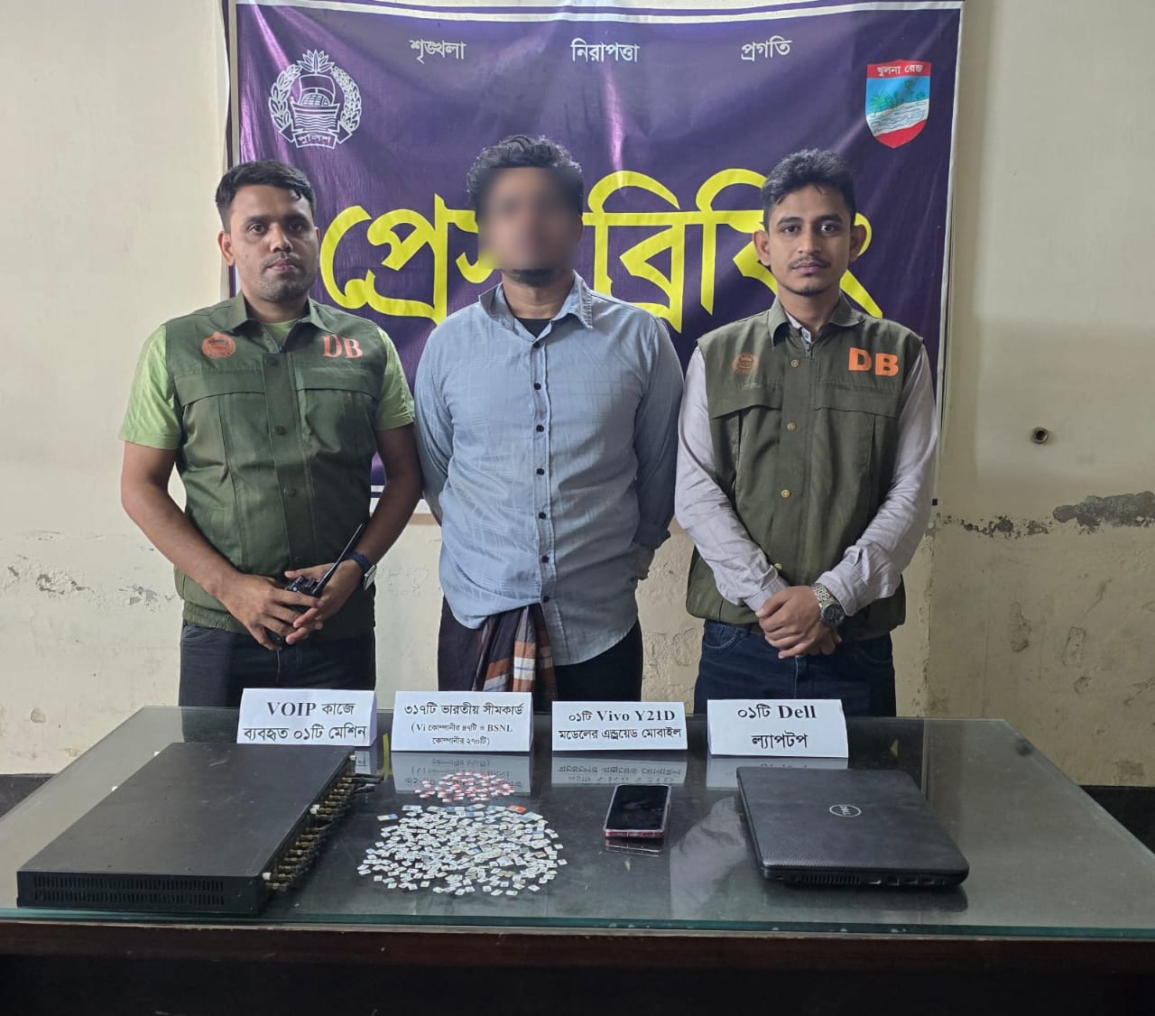 ভারতসহ বিভিন্ন দেশে তথ্য পাচার ও অবৈধভাবে ভিওআইপি ব্যবসার অভিযোগে ৩১৭টি ভারতীয় সিমকার্ডসহ বাবুল হোসেন (৩২) নামে এক ব্যবসায়ীকে গ্রেপ্তার করেছে পুলিশ। সোমবার ভোর রাতে যশোর শহরের চুয়াডাঙ্গা বাসস্ট্যান্ড কাঁচাবাজার মসজিদ গলির একটি বাসা থেকে তাকে আটক করে জেলা ডিবির সদস্যরা। আটকের পরে পুলিশ এদিন বিকেলে বাবুলকে আদালতে সোপর্দ করলে বিচারক তাকে কারাগারে পাঠানোর নির্দেশ দেন। আটক বাবুল ঝিনাইদহের মহেশপুর উপজেলার নোয়ালি গ্রামের বাসিন্দা। সোমবার সন্ধ্যায় ডিবি পুলিশ এক প্রেস বিজ্ঞপ্তিতে জানিয়েছে, গোপন সংবাদের ভিত্তিতে তারা জানতে পারে শহরের চুয়াডাঙ্গা বাসস্ট্যান্ড এলাকায় খন্দকার মিলনের বাড়িতে ভাড়া থেকে কতিপয় ব্যক্তি সরকারের রাজস্ব ফাঁকি দিয়ে অবৈধ ভিওআইপির মাধ্যমে ভারতসহ বহির্বিশ্বে অর্থের বিনিময়ে টেলিযোগাযোগ করে থাকে।