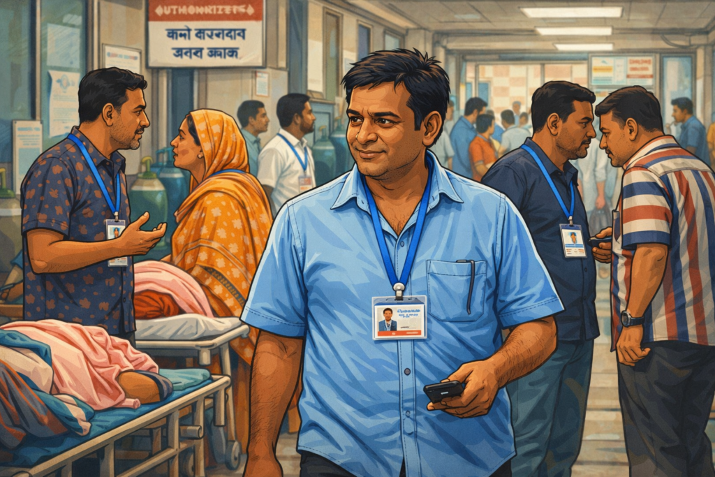 সাধারণ রোগী ও স্বজনদের বোঝার উপায় নেই যে, এরা হাসপাতালের কেউ নন। কর্তৃপক্ষের কোনো অনুমতি ছাড়াই জরুরি বিভাগের বিভিন্ন শিফটে দাপটের সঙ্গে কাজ করছেন ৮ থেকে ১২ জন ব্যক্তি। বিশেষ সুবিধার বিনিময়ে হাসপাতালের অসাধু চক্রের ছত্রছায়ায় গড়ে ওঠা এই ‘ভুতুড়ে’ বাহিনী এখন চিকিৎসা সেবা নিতে আসা মানুষের গলার কাঁটা হয়ে দাঁড়িয়েছে।