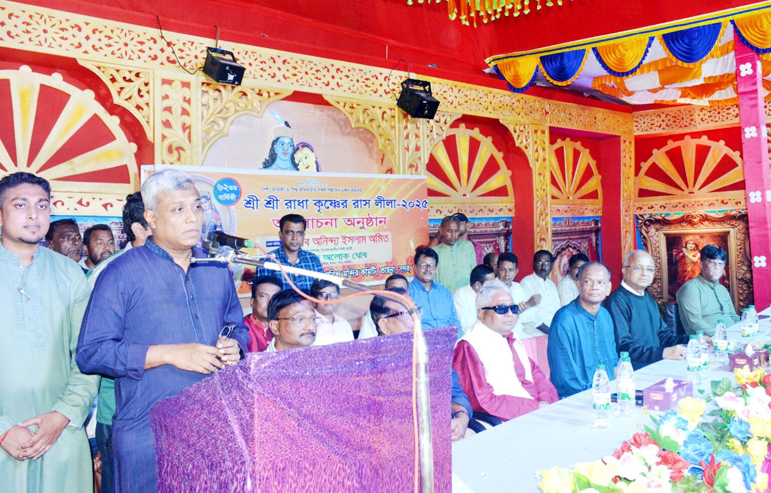 যশোর সদর উপজেলার ভায়না রাধাগোবিন্দ মন্দিরে শ্রী শ্রী রাধাকৃষ্ণের রাসলীলা ২০২৫ উপলক্ষে আলোচনা সভা অনুষ্ঠিত হয়েছে। শনিবার অনুষ্ঠিত আলোচনা সভায় প্রধান অতিথির বক্তব্য রাখেন, বিএনপির ভারপ্রাপ্ত সাংগঠনিক সম্পাদক (খুলনা বিভাগ) অনিন্দ্য ইসলাম অমিত।