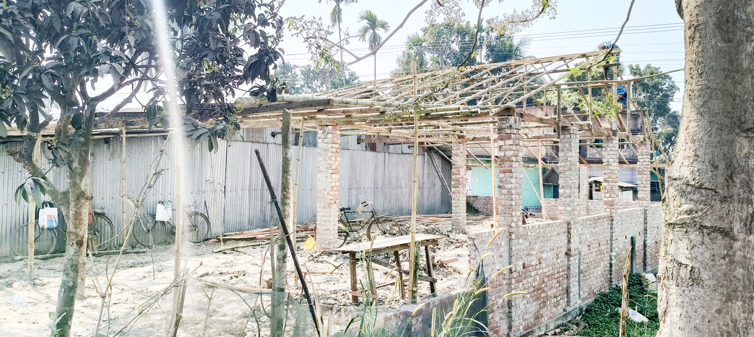 শনিবার সরেজমিনে গিয়ে দেখা যায়, ওই জায়গা ঘিরে ইটের দেয়াল ও পিলার তোলা হয়েছে। ওপরের অংশে টিন দিয়ে ঘর নির্মাণ প্রায় শেষ। স্থানীয়দের দাবি, প্রায় চার শতক জমির ওপর এ স্থাপনা গড়ে উঠেছে।