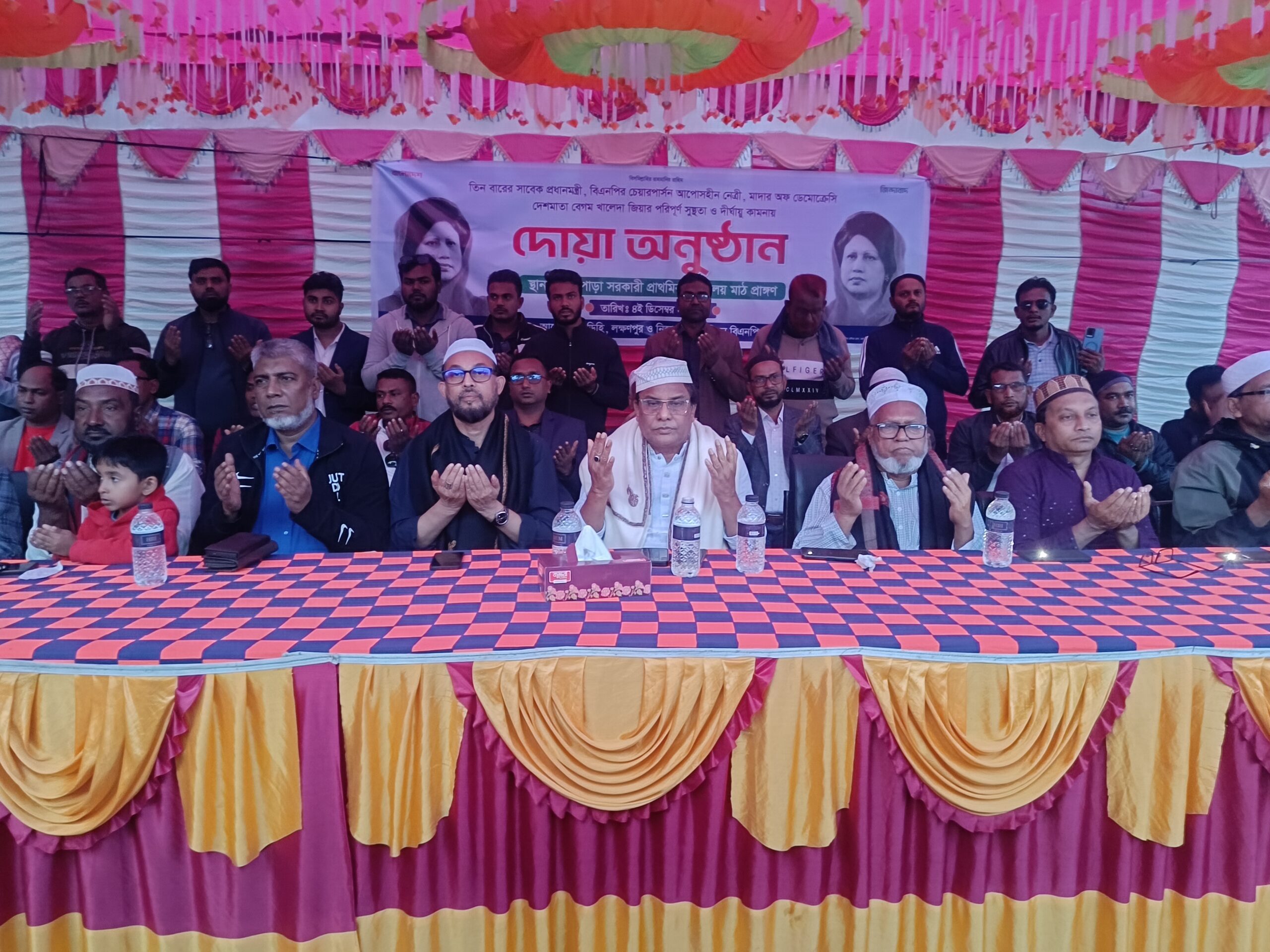 বাংলাদেশে তিন বারের সাবেক প্রধাণমন্ত্রী বেগম খালেদা জিয়ার পরিপূর্ণ সুস্থতা ও রোগ মুক্তি কামনায় মাহফিল অনুষ্ঠিত হয়েছে। বৃহস্পতিবার বিকেলে শার্শা নিজামপুর ইউনিয়ন গোড়পাড়া স্কুল মাঠে প্রাঙ্গণে। ডিহি, লক্ষণপুর ও নিজামপুর ইউনিয়ন বিএনপি উদ্যোগ এই দোয়া মাহফিল অনুষ্ঠিত হয়।