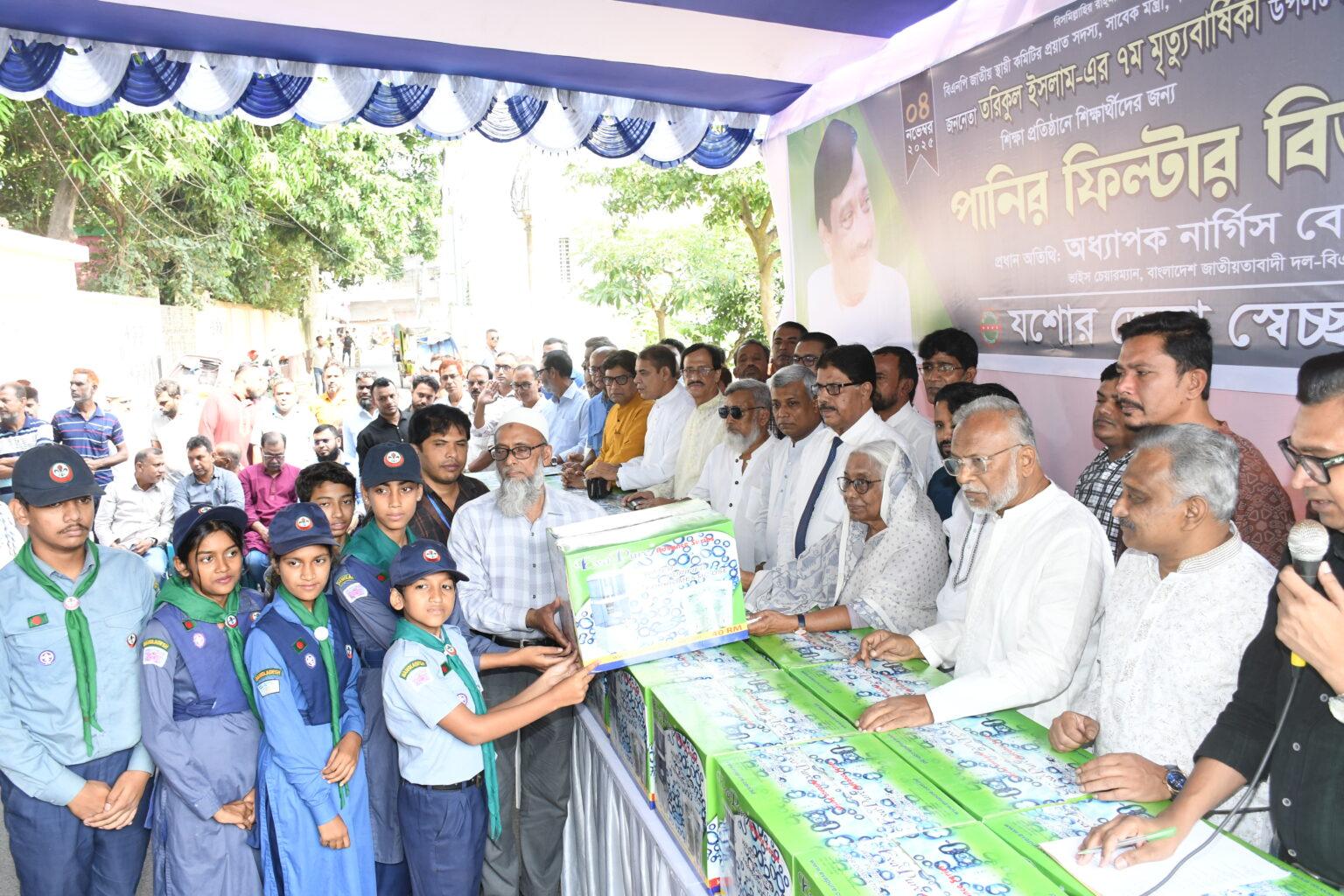 বিভিন্ন শিক্ষা প্রতিষ্ঠানে বিশুদ্ধ খাবার পানির ফিল্টার বিতরণের মধ্য দিয়ে বিএনপির জাতীয় স্থায়ী কমিটির সদস্য সাবেক মন্ত্রী তরিকুল ইসলামের সপ্তম মৃত্যুবার্ষিকী পালনের কর্মসূচি শুরু হয়েছে। সোমবার যশোর জেলা স্বেচ্ছাসেবক দল এই কর্মসূচির আয়োজন করে। জেলা বিএনপি কার্যালয়ের সামনে অনুষ্ঠিত কর্মসূচিতে প্রধান অতিথি ছিলেন, বিএনপির ভাইস চেয়ারম্যান অধ্যাপক নার্গিস বেগম।