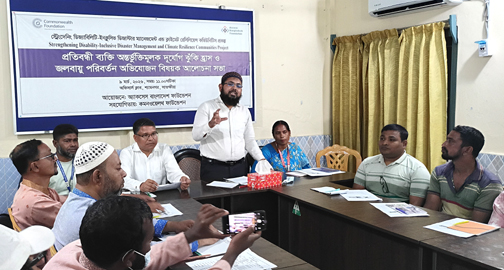 শ্যামনগরে প্রতিবন্ধী ব্যক্তিদের অন্তর্ভুক্ত করে দুর্যোগ ঝুঁকি হ্রাস ও জলবায়ু পরিবর্তনের সাথে অভিযোজন বিষয়ে সচেতনতা বৃদ্ধি এবং সক্ষমতা উন্নয়নের লক্ষ্যে আলোচনা সভা অনুষ্ঠিত হয়েছে।