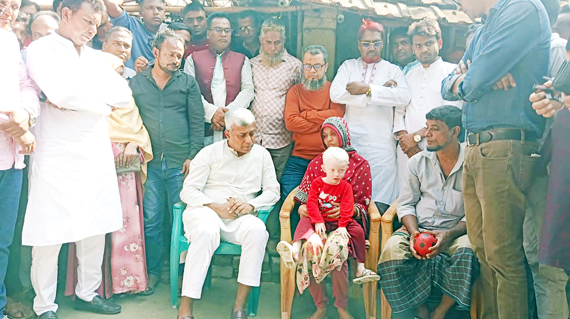 ভাঙা টিনের চাল। সেই ঘরের দেয়ালও টিনের। তাও ক্ষয় হয়েছে অনেকটাই। ঘরটির সামনে ছোট উঠান। মাঝারি আম গাছের ডালপালা ভেদ করে সেই উঠানে ঝলমলিয়ে প্রবেশ করেছে শীতের মিষ্টি রোদ। প্লাস্টিকের চেয়ারে কয়েকজন নারী সেই রোদ পোহাচ্ছেন। ছোট্ট সেই উঠোনে অন্য শিশুদের সঙ্গে খেলা করছে প্রাণোচ্ছ্বলে ভরপুর তিন বছরের শিশু। নাম জিজ্ঞাসা করতেই আধো আধো ভাঙা বুলিতে জানিয়ে দিলেন আফিয়া। আফিয়ার বয়স যখন ৮ মাস, সেই সময় তার মা মনিরা খাতুনকে তালাক দেন মোজাফ্ফর হোসেন। মনিরার অপরাধ, তিনি যে শিশুটিকে ভূমিষ্ঠ করেছেন- তার ত্বক ও মাথার চুল সাধারণ বাচ্চাদের মতো নয়। আফিয়ার ত্বক দুধসাদা, মাথার চুল ও ভ্রু হালকা ঘিয়ে রঙের। তার স্বামীর দাবি, ওই সন্তান তার ঔরসে নয়। সেই কারণে তিনি তাকে তালাক দিয়েছেন। মনিরার বাড়ি যশোর সদরের রামনগর ইউনিয়নের বাজুয়াডাঙ্গা পশ্চিমপাড়ায়। তিনি দিনমজুর শহিদ মোল্লার মেয়ে। বর্তমানে আফিয়া ও মনিরা নানার বাড়িতেই বসাবস করছেন।