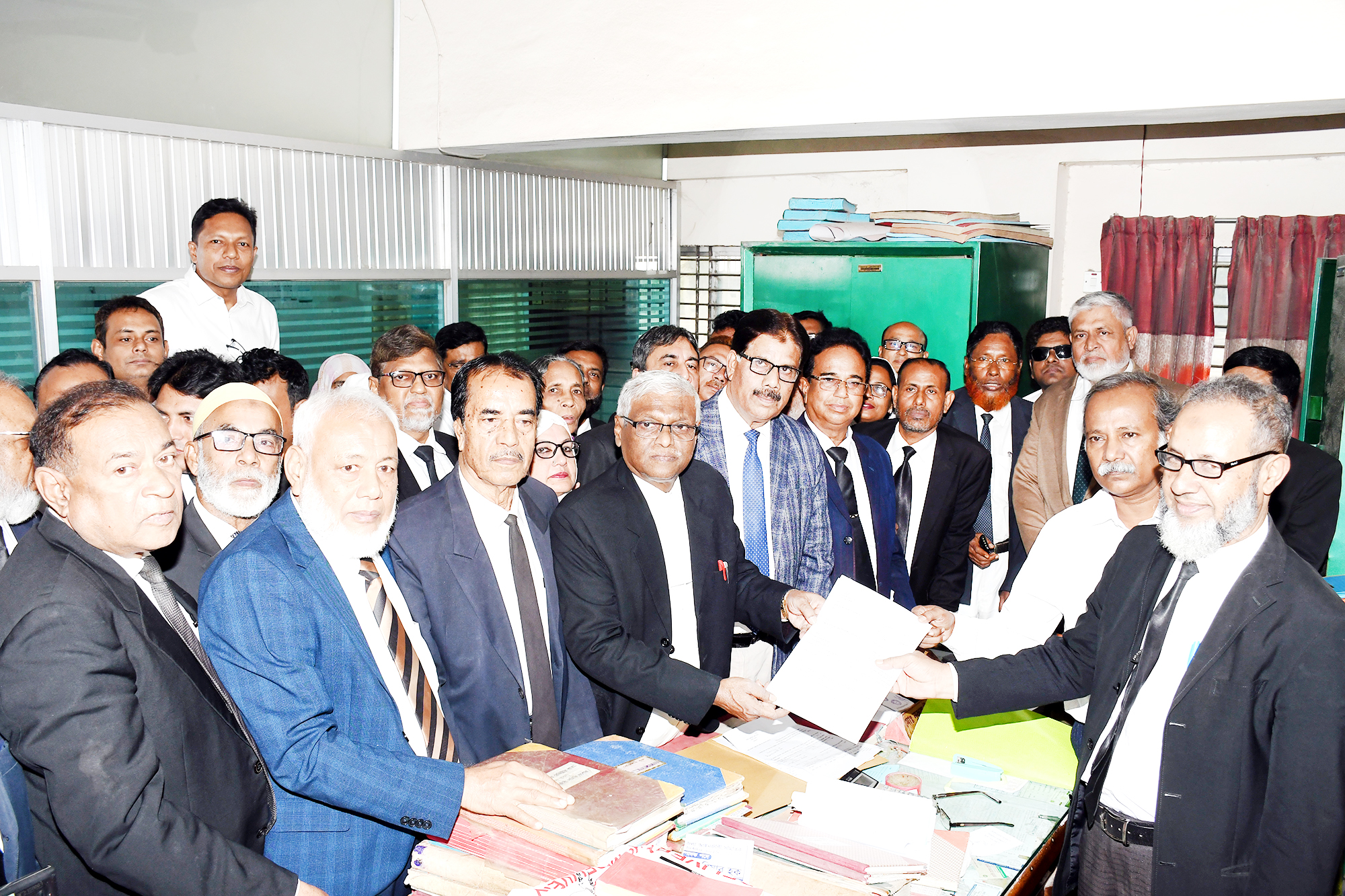 দুপুরে ব্যাপক উৎসাহ উদ্দীপনার মধ্যে দিয়ে প্রার্থীরা দলবদ্ধ হয়ে নির্বাচন কমিশনে মনোনয়নপত্র জমা দেন। এ সময় উপস্থিত ছিলেন, জাতীয়তাবাদী আইনজীবী ফোরামের আহবায়ক সিনিয়র আইনজীবী দেবাশীষ দাস, আব্দুল মোহায়মেন, মোহাম্মদ ইসহক, মঈনুল হক খান ময়না, আমিনুর রহমান, আব্দুল লতিফ লতা, আরিফুল ইসলাম শান্তি, হাসানুর রহমান আসাদ, আব্দুর রাজ্জাক, নুরুজ্জামান খান প্রমুখ। লইয়ার্স কাউন্সিলের উপদেষ্টা ইমামুল হাসান, মাফুজুর রহমান, মঞ্জুর কদের আশিক, রুহিন বালুজ, আলমগীর সিদ্দিক, শাহরিয়ার হক রিফাত, রেজাউল করিম, আজহারুল ইসলাম, আব্দুর রহমান সোহাগ, তাজউদ্দিন আহম্মেদ প্রমুখ। গণতান্ত্রিক আইনজীবী সমিতির কাজী ফরিদুল ইসলাম, মাহমুদ হাসান বুলু, মোস্তফা হুমায়ুন কবির, দেবাশীষ ভট্টাচার্য্য, স্বপন ভদ্র, প্রশান্ত দেব নাথ, শাহরিয়ার বাবু প্রমুখ। ঘোষিত তফসিল অনুযায়ী ১৬ নভেম্বর রোববার মনোনয়নপত্র যাচাই বাছাই শেষে ওই দিন সমিতির উভয় ভবনের নোটিশ বোর্ডে বৈধ প্রার্থীদের নামের তালিকা প্রকাশ করা হবে। এবারের নির্বাচনে ৫৩৬ জন ভোটার তাদের ভোটাধিকার প্রয়োগ করবেন। ২৮ নভেম্বর শুক্রবার সমিতির ১ নম্বর ভবন মিলনায়তনে সকাল ১০ টা থেকে বিকেল সাড়ে ৪টা পর্যন্ত নির্বাচনের ভোট গ্রহণ চলবে। এর মধ্যে দুপুর ১টা থেকে আড়াইটা পর্যন্ত জুম্মার নামাজের বিরতি থাকবে।