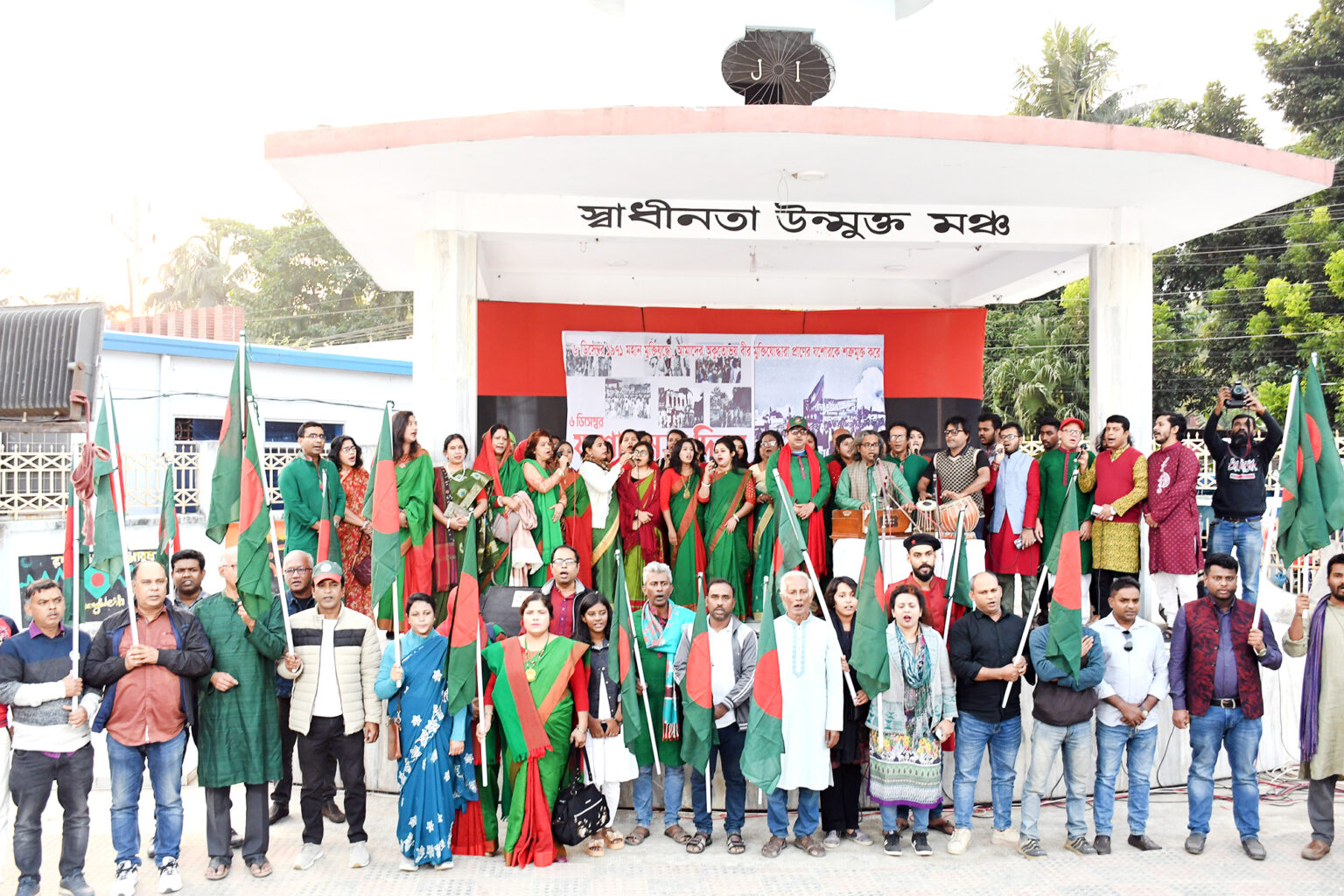 অনুষ্ঠানের শুরুতে পরিবেশিত হয় দলীয় মুক্তিযুদ্ধের গান। এরপর সাংস্কৃতিক কর্মীরা গাইতে থাকেন সমবেত কণ্ঠে জাতীয় সংগীত। এতে শত শত কন্ঠে কন্ঠ মেলান বিভিন্ন শ্রেণী পেশার মানুষ। জাতীয় সংগীত শেষে বের হয় বিজয় মিছিল।