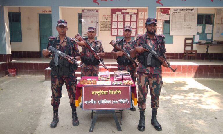বিজ্ঞপ্তিতে জানানো হয়, ব্যাটালিয়নের অধীনস্থ তলুইগাছা, চান্দুরিয়া, কুশখালী, মাদরা, গাজীপুর ও কালিয়ানী বিওপির দায়িত্বপূর্ণ এলাকায় পৃথক পৃথক অভিযানে এসব মালামাল জব্দ করা হয়।