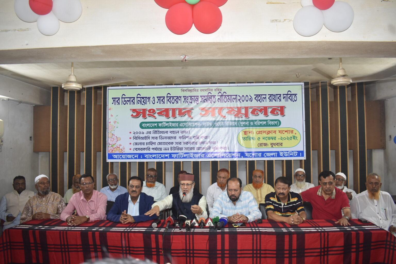 বাংলাদেশ ফার্টিলাইজার অ্যাসোসিয়েশন, যশোর জেলা ইউনিটের সভাপতি শাহ জালাল হোসেন সংবাদ সম্মেলনে লিখিত বক্তব্য পাঠ করেন।