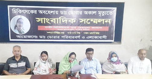 সংবাদ সম্মেলনে বক্তারা বলেন, একজন বিসিএস ক্যাডার চিকিৎসক যদি এমন অবহেলার শিকার হয়ে প্রাণ হারান, তাহলে সাধারণ মানুষের নিরাপত্তা কোথায়? আমরা এ ঘটনার সুষ্ঠু তদন্ত ও ন্যায়বিচার চাই।
