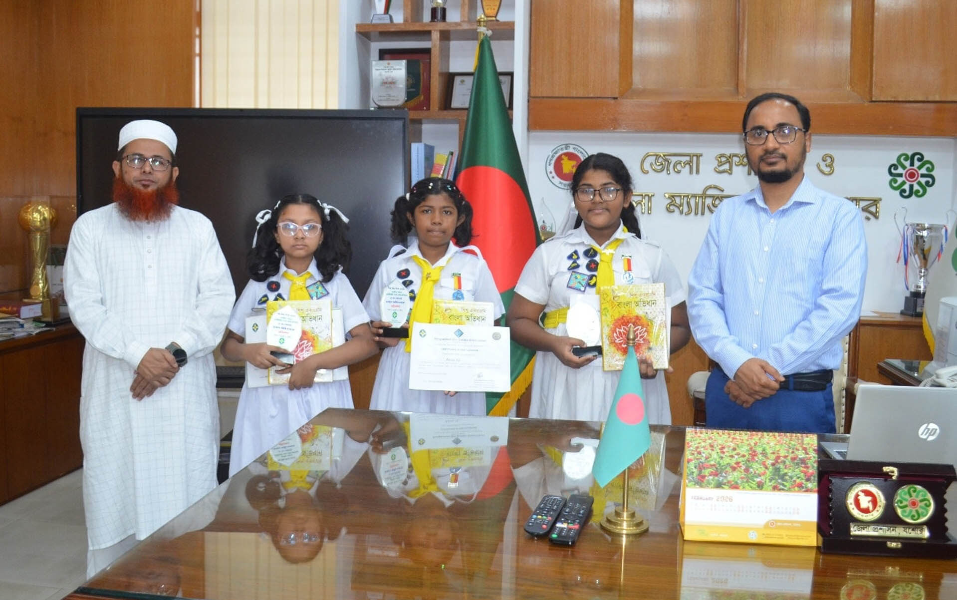 সোমবার দুপুরে তিনি কালেক্টরেট স্কুল দলের কৃতিত্ব অর্জনকারী তিন শিক্ষার্থী জুনাইনা আক্তার, অঙ্কনা পাল ও মিনহা রহমান সুপ্ত’কে উপহার প্রদান করেন এবং অভিনন্দন ও শুভকামনা জানান।