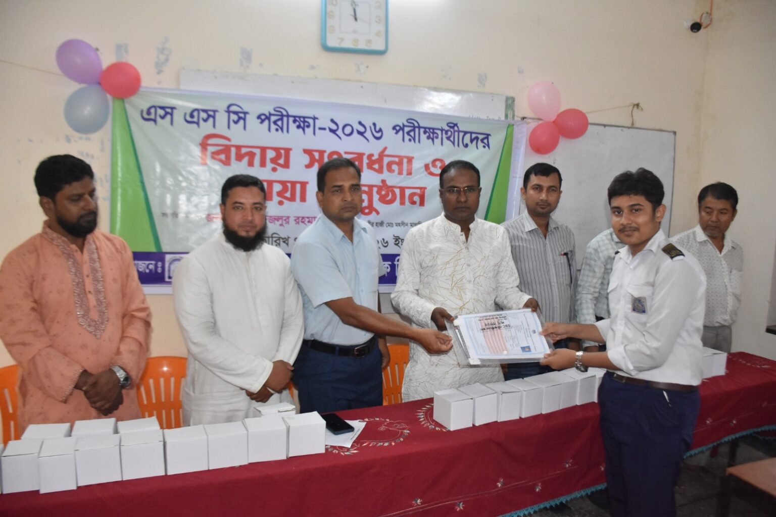 শেষে শিক্ষার্থীদের মাঝে মিষ্টি বিতরণ এবং পরীক্ষা সামগ্রি উপহার হিসেবে বিতরণ করা হয়।