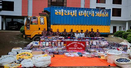 যশোর ব্যাটালিয়ন ৪৯ বিজিবির অধিনায়ক লে. কর্নেল সাইফুল্লাহ্ সিদ্দিকী জানিয়েছেন, গোপন সংবাদের ভিত্তিতে বেনাপোল ভবেরবেড় ট্রাক টার্মিনালের সামনে পাকা রাস্তার উপর হতে মাগুরা কার্গো সার্ভিসের একটি কার্গো ট্রাক তল্লাশীর জন্য থামানো হয়। পরবর্তীতে ট্রাকটিতে অবৈধ মালামাল জব্দ করা হয়। যার আনুমানিক সিজার মূল্য ২ কোটি ৫০ লাখ ৬১ হাজার টাকা। তিনি জানান, আসন্ন দুর্গা পূজা উপলক্ষে অধিক মুনাফা লাভের আশায় এসব মালামাল আনা হয়। আটক চোরাচালানী মালামালসহ আসামিদের বিরুদ্ধে মামলা দিয়ে বেনাপোল পোর্ট থানায় হস্তান্তর করা হয়েছে।