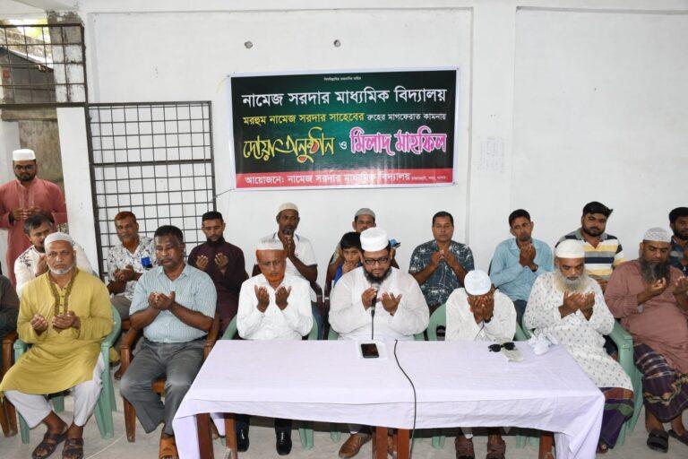 বিদ্যালয়ের সভাপতি মুন্সী নাজমুল হোসেন দোয়া মাহফিল পরিচালনা করেন। তিনি মরহুম নামেজ সরদার এবং তার পরিবারের বিদ্যালয় প্রতিষ্ঠায় অবদানের কথা কৃতজ্ঞতার সঙ্গে স্মরণ করেন।
