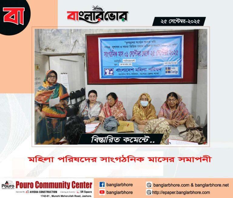 ‘তৃণমূলের সংগঠন সংহত করি গণতন্ত্র, সুশাসন ও সমতা ভিত্তিক সমাজ প্রতিষ্ঠার সংগ্রাম শক্তিশালী করি’ এই শ্লোগানকে সামনে নিয়ে কর্মী সম্মেলনের মাধ্যমে সাংগঠনিক মাসের সমাপনী ঘোষণা করেছে বাংলাদেশ মহিলা পরিষদ যশোর জেলা শাখা।