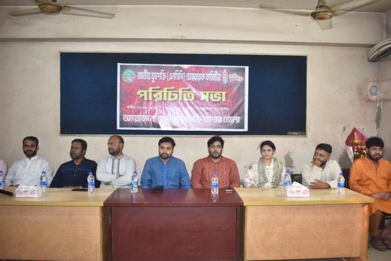 নবাগত সদস্যদের পরিচিতি এবং সাংগঠনিক লক্ষ্য নির্ধারণের উদ্দেশ্যে আয়োজিত এই সভায় সভাপতিত্ব করেন, জাতীয় যুবশক্তি যশোর জেলার আহবায়ক ইমদাদ হোসাইন। অনুষ্ঠান সঞ্চালনা করেন, সদস্য সচিব ফারহীন আহমেদ।