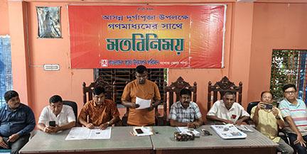 লিখিত বক্তব্য পাঠ করেন, যশোর জেলা পূজা উদযাপন পরিষদের সাধারণ সম্পাদক রতন কুমার ঘোষ। তিনি আশা প্রকাশ করেন, আগামী ২৮ সেপ্টেম্বর থেকে ২ অক্টোবর পর্যন্ত বাঙালির অন্যতম প্রধান উৎসব শারদীয় দুর্গাপূজা সকলের স্বতঃস্ফূর্ত অংশগ্রহণের মধ্য দিয়ে সাড়ম্বরে ও নিñিদ্র নিরাপত্তায় সম্পন্ন হবে।