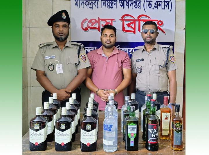 অধিদপ্তর সূত্রে জানা গেছে, বৃহস্পতিবার শন্ধ্যায় যশোর শহরের শংকরপুর বাস টার্মিনাল এলাকায় আসামি মবিল ও ব্যাটারি বিক্রির দোকান হতে বিভিন্ন ব্রাণ্ডের সাতাশ বোতল বিদেশি মদ উদ্ধার ও আসামি নাজমুল ইসলাম নয়নকে আটক করে। আটক নাজমুল নিউ বেজপাড়া রোড এলাকার বাসিন্দা।