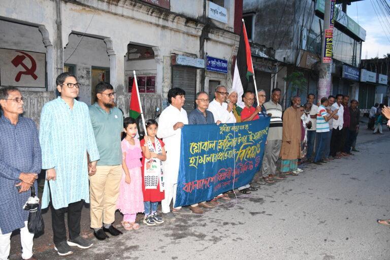 বিক্ষোভ সমাবেশে বক্তারা আরো বলেন, ফিলিস্তিন ও গাজাকে আলাদা রাষ্ট্র হিসেবে স্বীকৃতি দেয়ার পরও বিশ্বের কিছু শক্তিধর দেশ ছোট্ট ইসরায়েলের পক্ষে অস্ত্র ও সমর্থন দিয়ে এই নৃশংস ঘটনার সঙ্গে সম্পৃক্ত হচ্ছে। এই অনৈতিক সহায়তা মানবতার বিরুদ্ধে এক ধরনের খেলায় রূপ নিয়েছে। আমরা বিশ্বাস করি শহীদের রক্তের বিনিময়ে ফিলিস্তিন স্বাধীনতা অর্জন করবে ইনশাআল্লাহ। আমরা জাতিসংঘ ও আন্তর্জাতিক সম্প্রদায়কে আহ্বান জানাই- অবিলম্বে ইসরায়েলের হাতকে দমন করুন। দখল হওয়া অঞ্চলগুলো দ্রুত মুক্ত ঘোষণা করুন এবং ত্রাণবাহী জাহাজের কর্মীদের অবিলম্বে মুক্তি দিন। বাংলাদেশ সরকারের নিন্দা ও মুক্তির দাবিকেও আমরা স্বাগত জানাই। যতদিন ফিলিস্তিন স্বাধীনতা অর্জন করবে না, ততদিন মুসলমানদের লড়াই সহানুভূতি ও সংগ্রাম অব্যাহত থাকবে।
